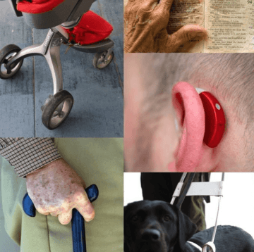 Osoby se zdravotním postižením: Vizuální, sluchové, hmatové, síla, úchop, přístupné, funkční